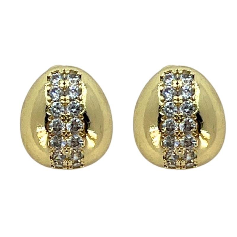 BRINCO FOLHEADO A OURO COM FAIXA DE ZIRCÔNIAS. PINO ANTIALÉRGICO, DESIGN CLÁSSICO E ALTA ACEITAÇÃO PARA REVENDA DE SEMIJ