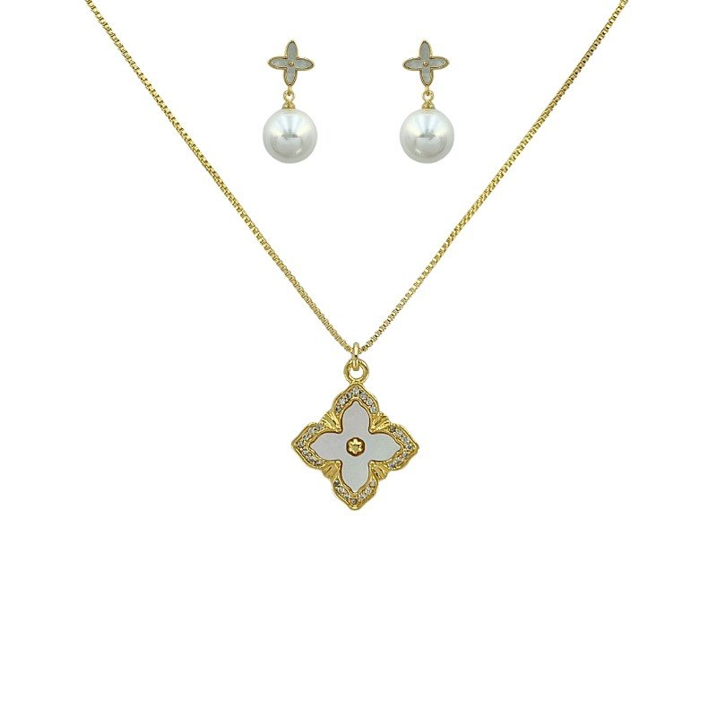 CONJUNTO FLOR COM MADRE PEROLA : 003210795 Facebook X Pinterest WhatsApp FOLH. OURO SEM COR 045 : 42 : 4.6g × ×