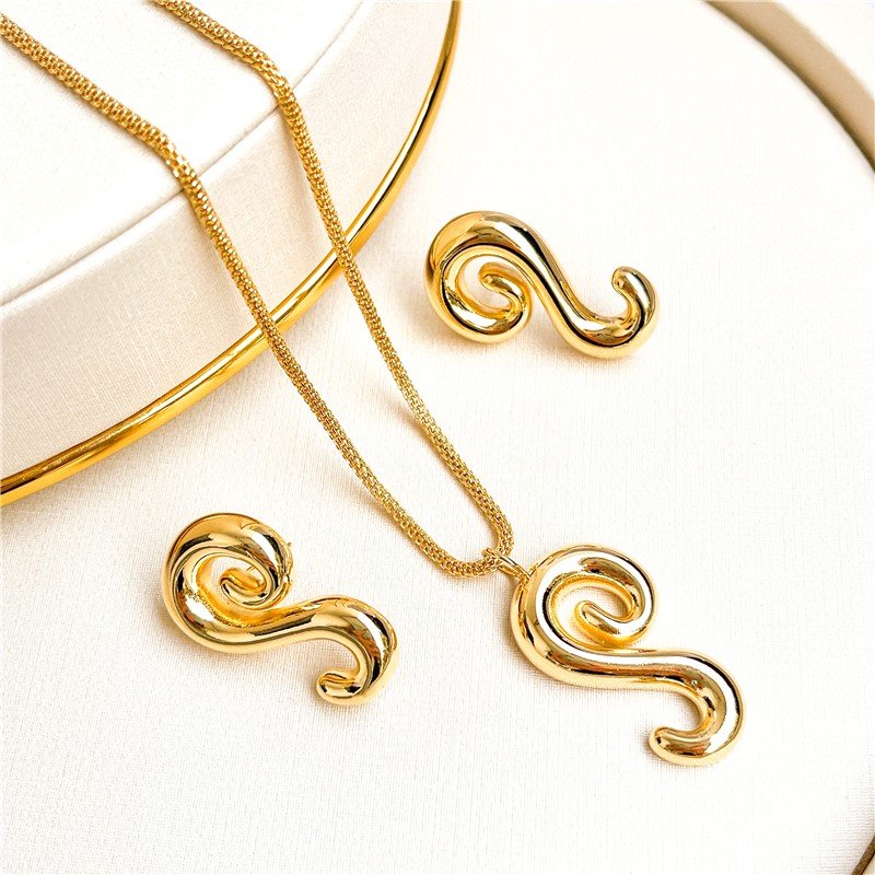 Com formas fluidas e expressivas, este conjunto é a escolha ideal para quem busca uma estética sofisticada com personalidade marcante.Destaques:Conjunto de colar com 45cm e par de brincosPingente e ...