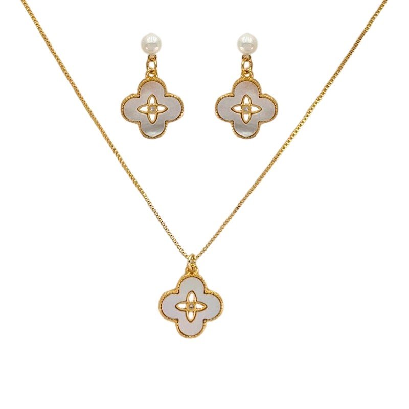 CONJUNTO TREVO COM MADRE PEROLA : 003210821 Facebook X Pinterest WhatsApp FOLH. OURO SEM COR 045 : 21 : 1g × ×