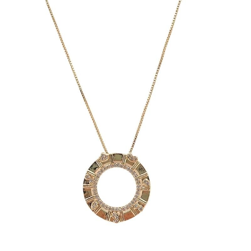 Esta gargantilha é uma peça imponente e cheia de estilo, perfeita para quem busca um toque moderno com acabamento refinado. O pingente redondo com textura geométrica é enriquecido com microzircônias cravejadas, proporcionando um brilho sutil que valoriza o colo com sofisticação.Destaques: