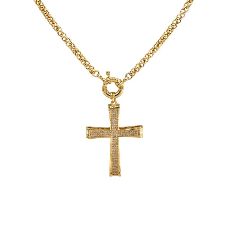 GARGANTILHA CRUZ 46X58 MM COM FECHO BOIA : 006218413 Facebook X Pinterest WhatsApp FOLH. OURO SEM COR 045 : 4 : 28g × ×
