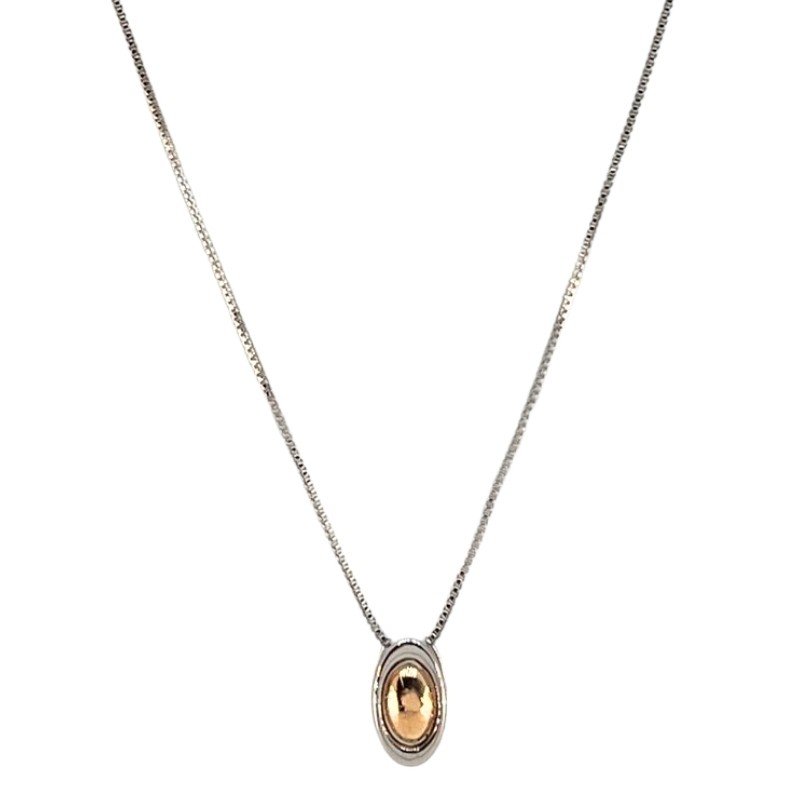 GARGANTILHA OVAL 7X14 MM : 006216886 Facebook X Pinterest WhatsApp FOLH.BICOLOR OURO/ RODIO NA MESMA PEÇA SEM COR 040 : 25 : 3.3g × ×