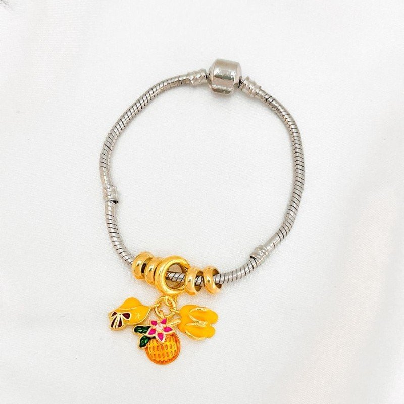 PULSEIRA COM PINGENTE : 005215166 Facebook X Pinterest WhatsApp AÇO INOX COM FOLH.OURO SEM COR 018 : 22 : 13.3g × ×
