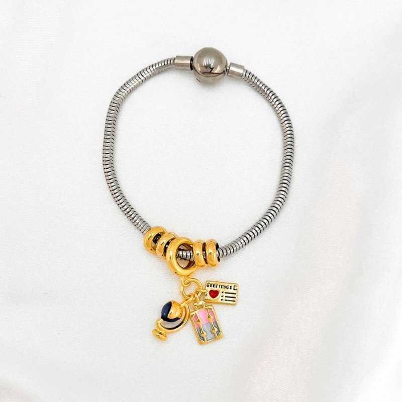 PULSEIRA COM PINGENTES : 005215170 Facebook X Pinterest WhatsApp AÇO INOX COM FOLH.OURO SEM COR 018 : 17 : 12.6g × ×