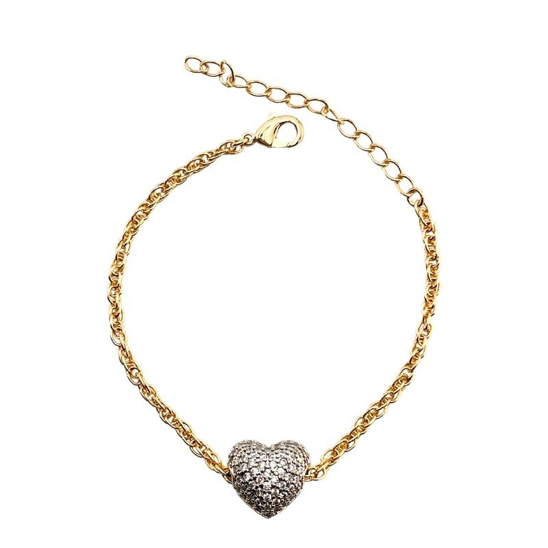 PULSEIRA CORACAO : 005213547 Facebook X Pinterest WhatsApp FOLH.BICOLOR OURO/ RODIO NA MESMA PEÇA CRISTAL SEM TAMANHO : 33 : 5.4g × ×