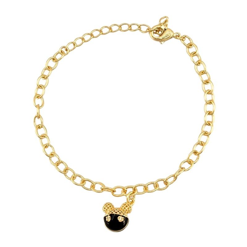 A pulseira dourada com pingente Mickey é a escolha ideal para quem busca um acessório moderno e divertido. Produzida em corrente de elos clássicos, ela traz um toque de personalidade ao look adulto.